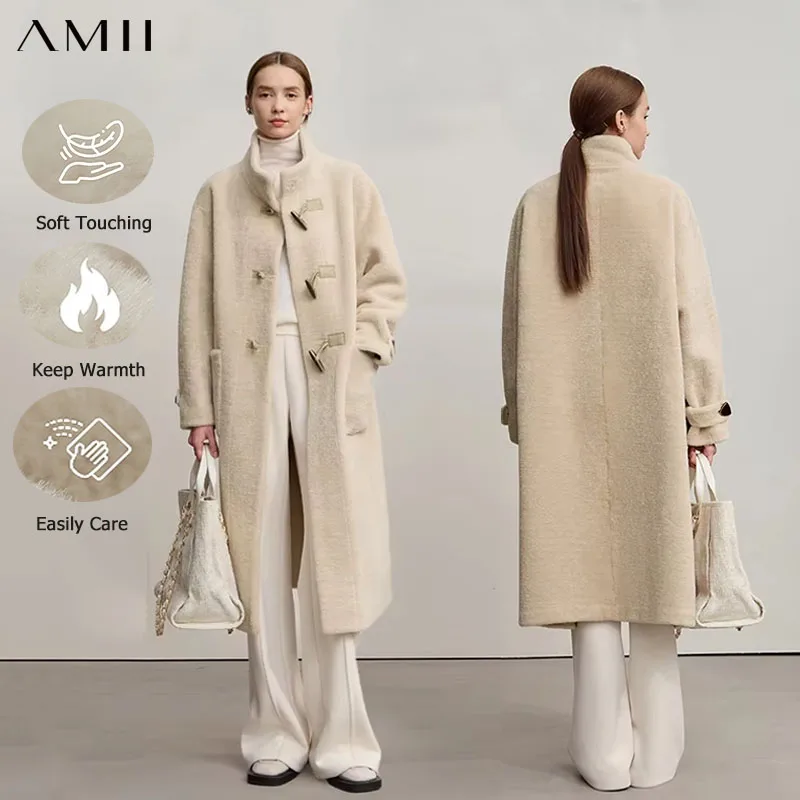 아미 여성 코트 2025 겨울 신상 루즈핏 롱 하프넥 긴소매 코트 여성 스트레이트 엘레강스 따뜻한 아우터 12554010