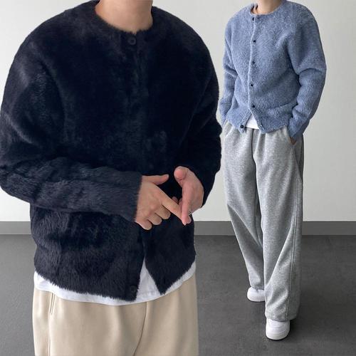 [모노폴로지]부들부들 앙고라 크롭 라운드 두꺼운 겨울 기모 모헤어 세미크롭 가디건 니트 4color