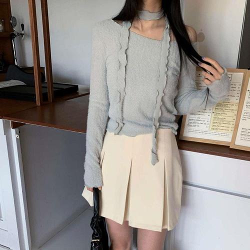 [옷자락] 여자 여리핏 보트넥 부드러운 앙고라 니트 머플러 세트