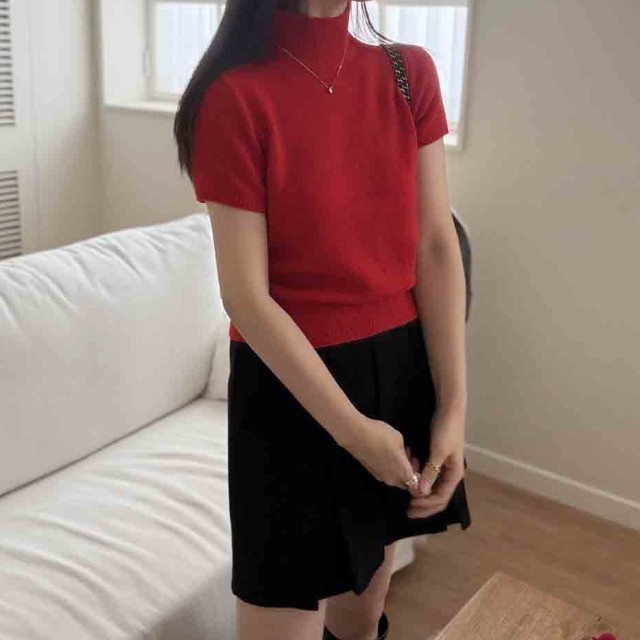 [미니멈][미니멈 에브리데이]앙고라 반하이넥 심플 반팔 니트 (EB3KT019D)