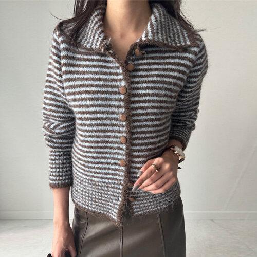 [릴룸]앙고라 레트로팝 울 스트라이프 카라 가디건