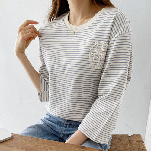 레이츄 / 앙투아 레이스 패치 스트라이프 7부 티셔츠