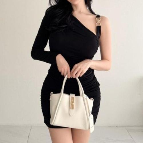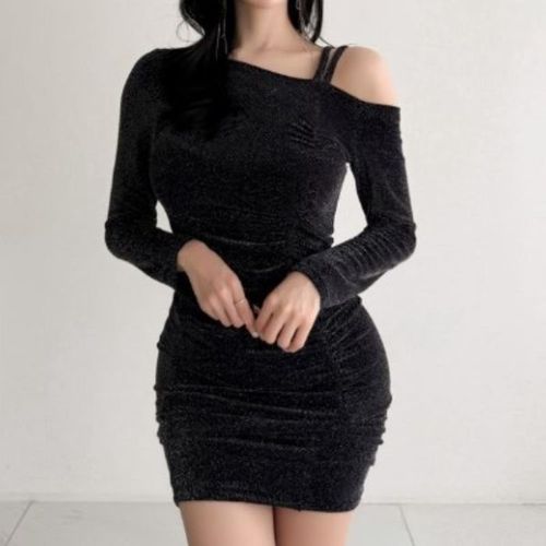 [옷자락]여성용 언밸런스 셔링 미니 파티 드레스