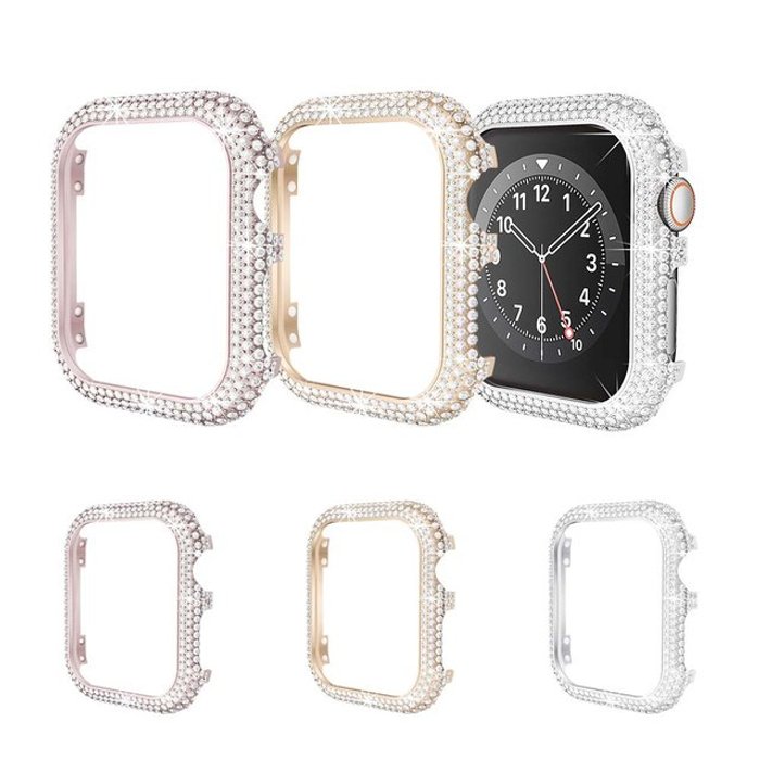 젤센 [젤센] 애플워치 9 8 7 6 SE SE2 호환 큐빅 메탈 범퍼형 하드케이스 + 전용파우치