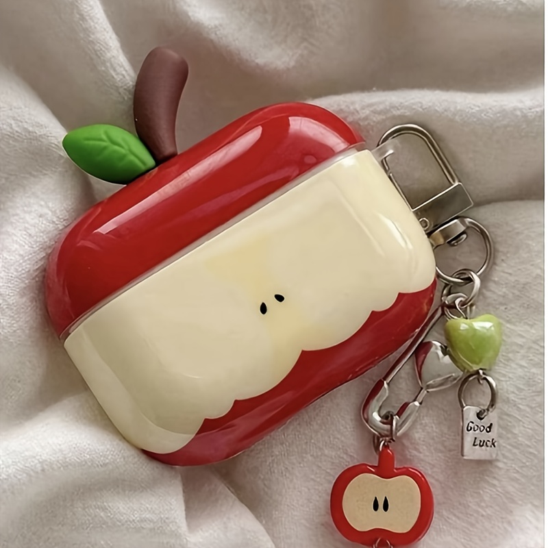 TEMU 귀여운 빨간색 3D 애플 코어, 에어팟 프로 1세대, 2세대, 3세대, 4세대 무선 이어폰 케이스 보호에 적합