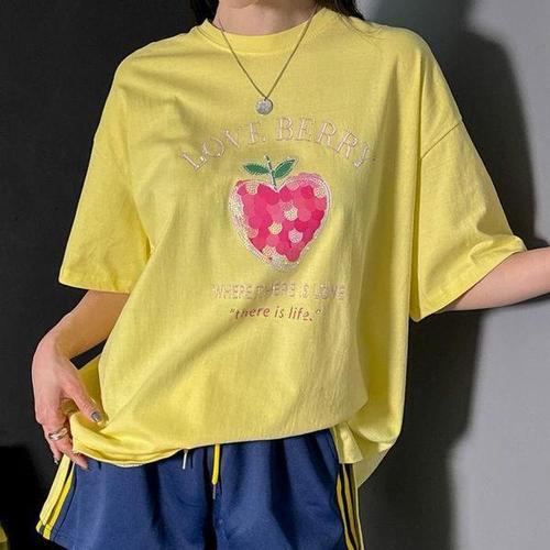 [쿼터]남녀공용 애플 파이 나염 프린팅 오버핏 반팔 티셔츠 3color