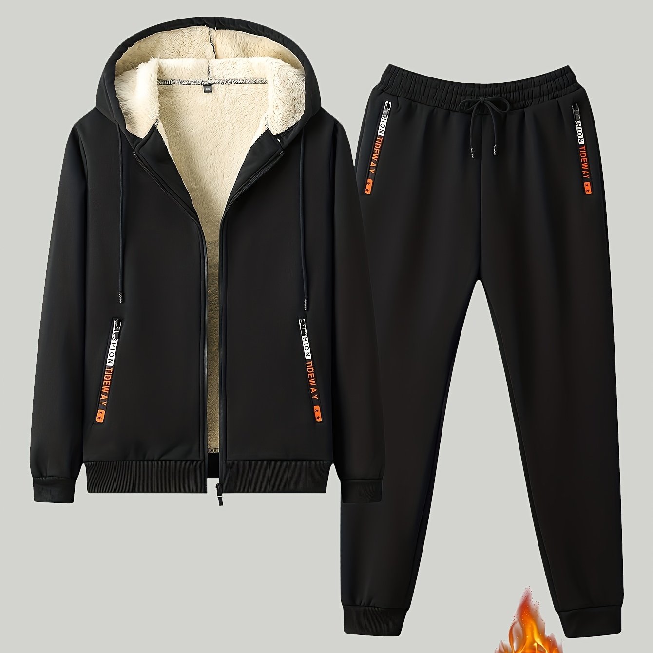 TEMU 남성용 푹신한 안감 두꺼운 캐주얼 운동복, 긴 소매 지퍼 업 후드 가디건 및 캐주얼 데일리 웨어, 가을 및 겨울용 드로스트링 바지