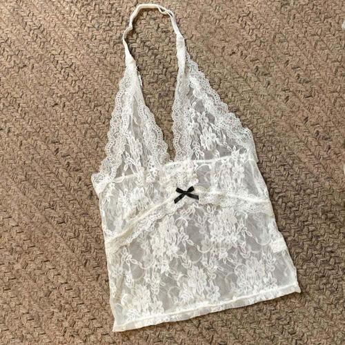 [셀럽하우스]키치 TUAX2042 시스루 리본 민소매 레이스 크롭 이너 나시
