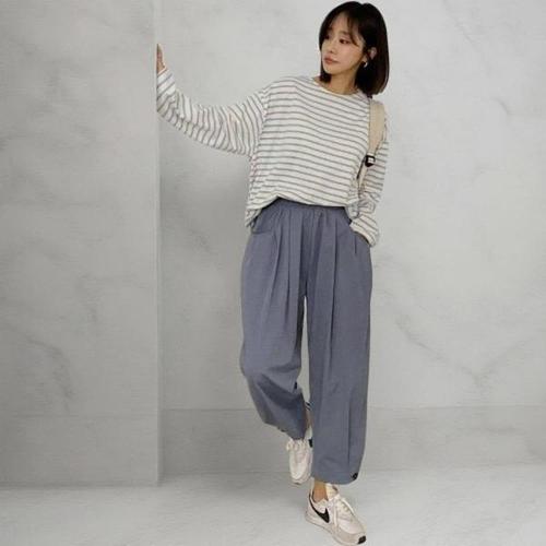 [다잇템][다잇템] 여성 핀턱 앵클 일상 고무줄 하렘 단추 슬릿 바지_22710097_588872