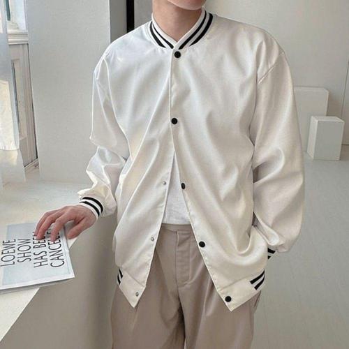오리지날 레트로 스냅단추 야구점퍼 남녀공용 오버핏 야구잠바 심플한 컬러 배색 아우터
