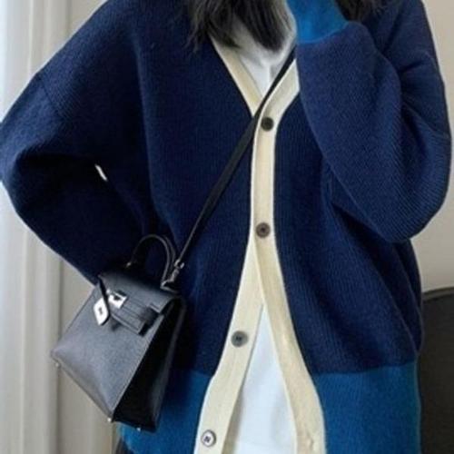 [XBI6IL21]브이넥 점퍼 야상 패딩 카디건코트 배색 가디건