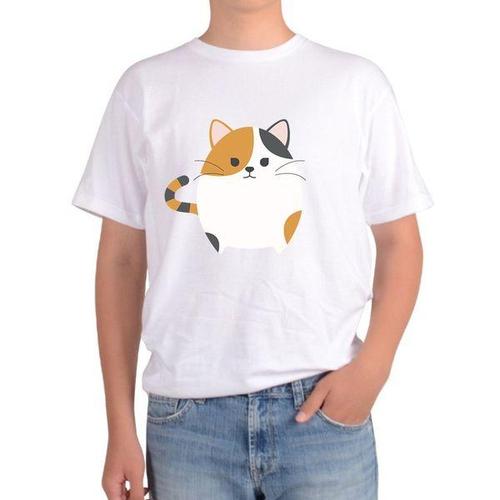티레오 남녀공용 반팔티셔츠 빅사이즈 라운드넥 커플용 귀여운 고양이 오버핏 순면 40수 고중량 자수