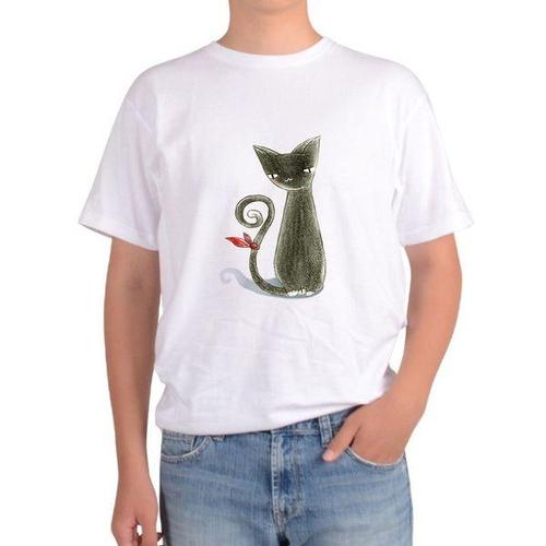 [에이치플러스몰]반팔 라운드티 화이트 캣 cat 야옹이 사랑