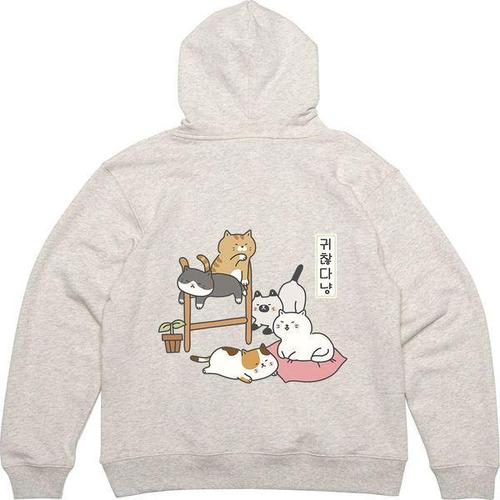 [에이치플러스몰]후드티 뒷면 프린트티셔츠 귀찮다냥 야옹이친구