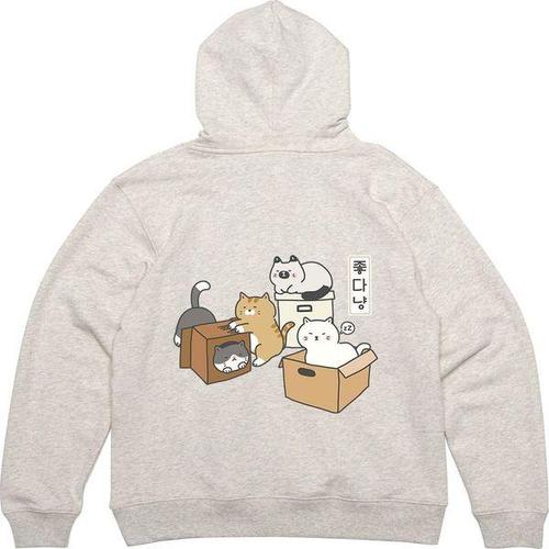 [에이치플러스몰]후드티 오트밀색상 전사이즈 야옹이 고양이 표정