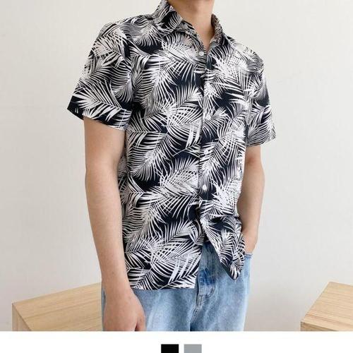 [옷자락]남자 휴양지 바캉스 야자수 꽃패턴 여유핏 반팔 남방