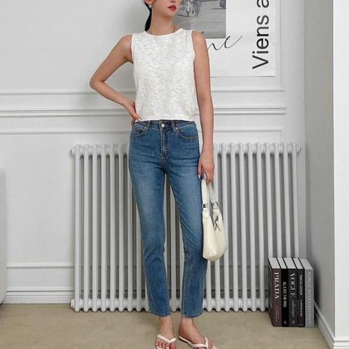 [HYIJO334_4B]여성 청바지 얇은 하이웨스트 밴딩 청바지