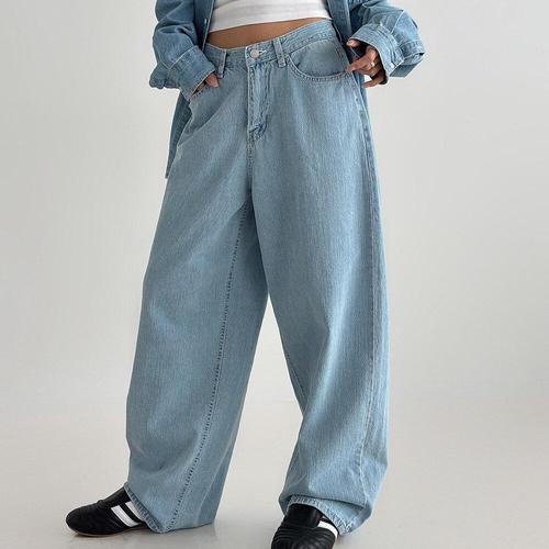 [다잇템]여자 얇은데님 와이드핏 낮은 박시 청바지