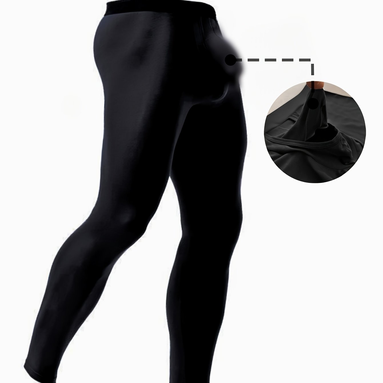 TEMU 남성용 얇은 기모 베이스 레이어 바지: 흡습성, 인체학적 파우치 디자인, 가을/겨울용 테일러드 핏, 운동용 롱 언더웨어, 할로윈 및 추수감사절 선물로 남성에게 완벽합니다.