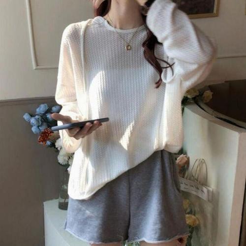[셀러허브_여성트랜드패션]ONM 후드 긴팔 티셔츠 얇은 니트 시스루 루즈핏 데일