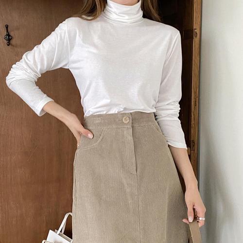 옷자락 / 여성 베이직 목폴라 레이어드 얇은 긴팔 티셔츠