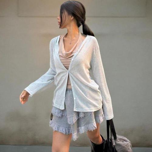 [신상오픈런]여성 여름 시스루 브이넥 얇은 긴팔 가디건 여리핏