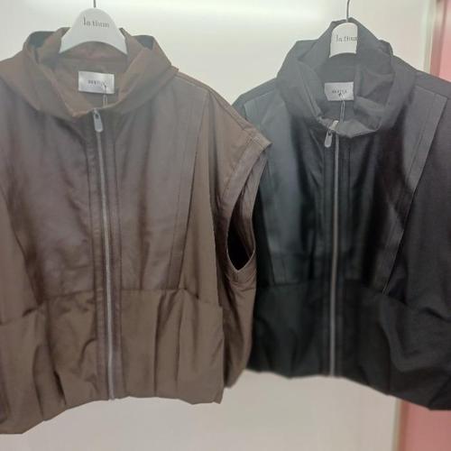 [라티움]Destijl HC06 양가죽 배색 루즈핏 캡소매 집업 벌룬 베스트 조끼 D2553vt02B (40920331)