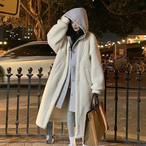 여자 떡볶이코트 Y2K 후드 뽀글이 양털 겨울 롱코트