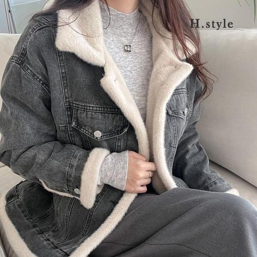[HYIK13FJ_4B]롱재킷 패션 데님 양털 소재 따뜻한 재킷