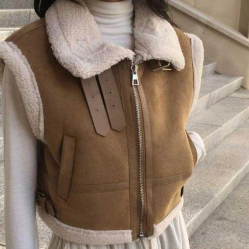 [신상오픈런]여성 하이넥 양털 무스탕 레이어드 일상 베스트