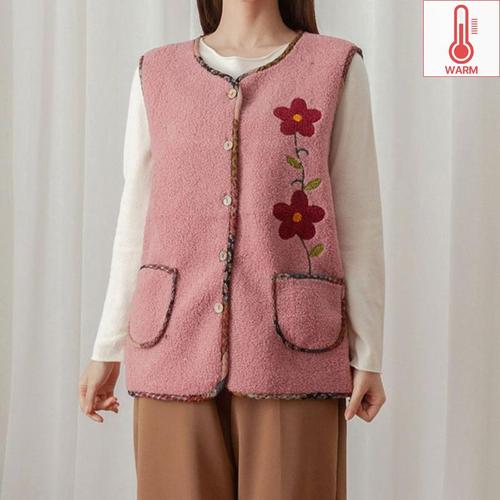 [홀리지]솜이벨라 플라워 자수 뽀글이 양털조끼 부클 베스트