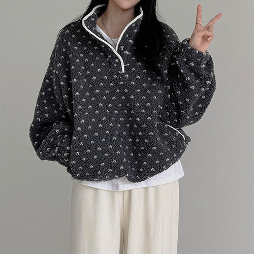 더클립 / 하트캔디 땡땡이 양털 아노락 후리스 캠핑룩