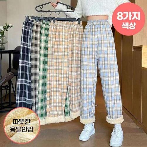겨울 양털체크바지 10종 와이드팬츠 양털바지 홈웨어 수면바지 겨울파자마 잠옷