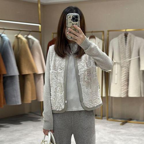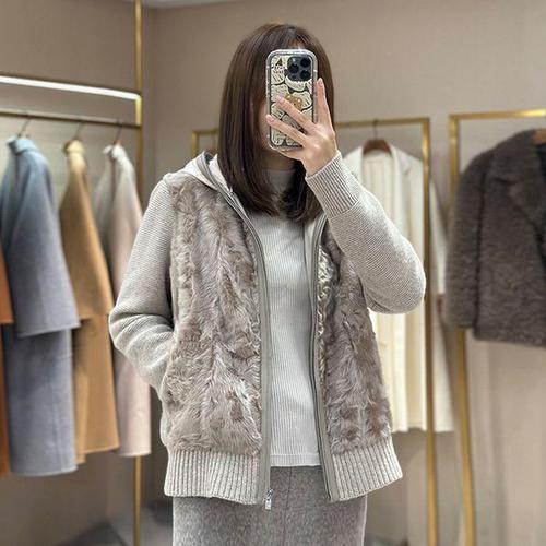 [무드무드]콜라쥬 양털 트리밍 캐시미어 니트 집업