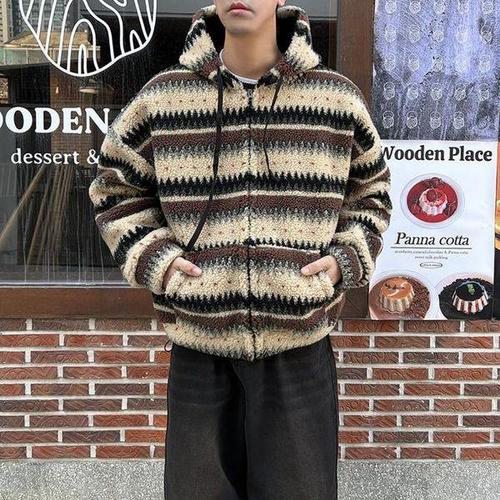[셀러허브_여성트랜드패션]남자 노르딕 후드 후리스 양털 점퍼