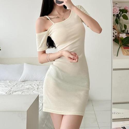 [다잇템]여자 한쪽 볼드숄더 어깨트임 페미닌 원피스 (10705876A)