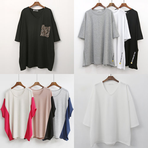 여름 옷 여자 빅사이즈 반팔 롱 스판 티셔츠 오버 핏 중년 엄마 미시 오버핏 큰옷