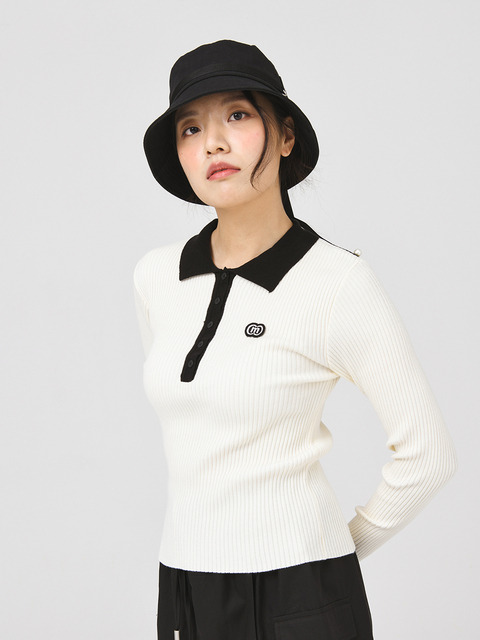 [두유노우엠씨] 25SS 리브 조직 배색 카라 티 아이보리 니트