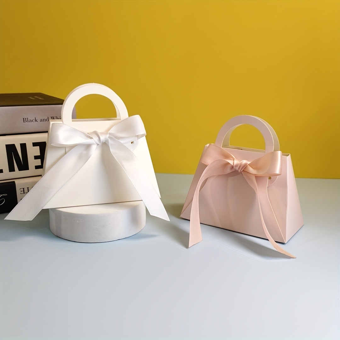 TEMU 4.72X2.36X3.15인치 미니 종이 선물 가방 20개 세트 (리본 포함). 핸들 달린 작은 핑크 & 화이트 선물 상자이며 대량 사용에 적합하며 생일 파티, 결혼식 답례품, 선물 포장, 소매업, 비즈니스에 적합합니다.