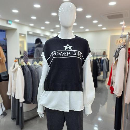 [꼼빠니아]흰 남방 니트 배색 라운드 니트 티셔츠 CAEW9-WDL700