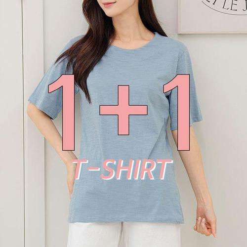 [드리다]1+1 여름 여자 반팔 기본티 베이직 이너 라운드 슬라브 빅사이즈 티셔츠 40-50대 중년여성 엄마..