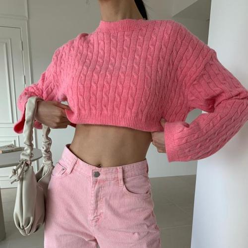 [옷자락]여자 FW 그런지 크롭티 언더붑 꽈배기 롱슬리브 니트