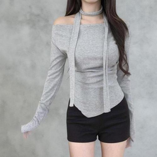 [다잇템_패션]여자 롱슬리브 클래식 사선 언발 민무늬 티셔츠