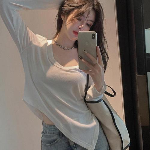 [다잇템][다잇템] 여자 핏 SS 롱슬리브 슬릿 언발 슬림 티셔츠_24544368_588872