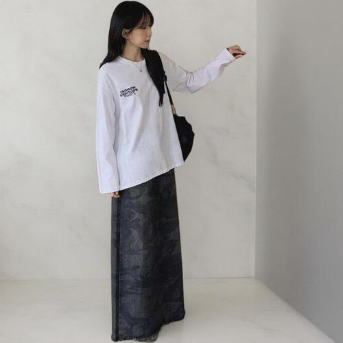 [나크21] (55~99) 언발 레터링 롱 티셔츠 DM43-T-48