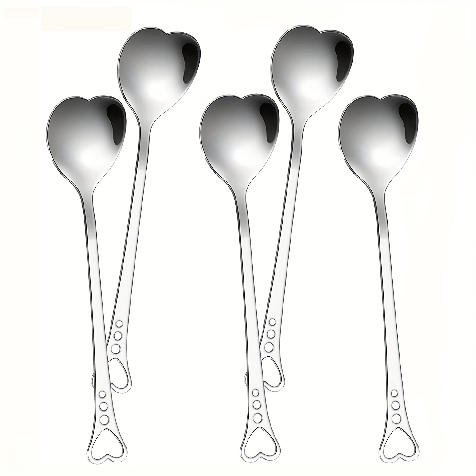 TEMU 커피 바/디저트 가게를 위한 이상적인 선물, 발렌타인데이/어머니날용 스테인리스 스틸 하트 모양 숟가락 세트 5개, 커피 스터러//밀크셰이크용 티스푼, 실버/골드, 5.63인치