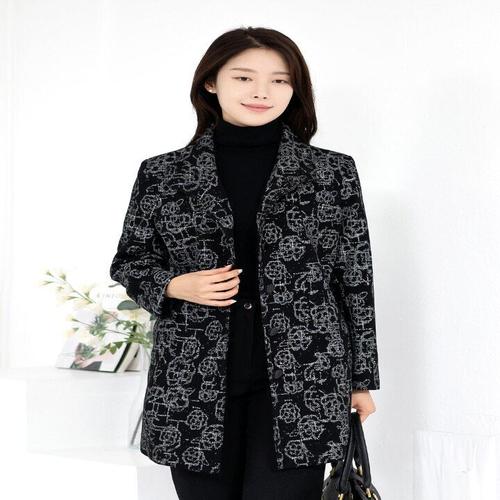 중년 여성 모직 자켓 엄마복 가을 겨울 루즈핏 모직 정장 숏 코트 YXF