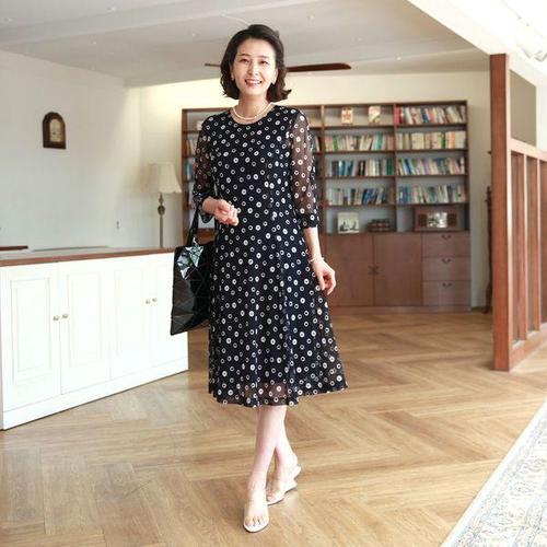 [쉬즈마담]N2673 링동글 망사스판 플에어 원피스 50대 엄마옷