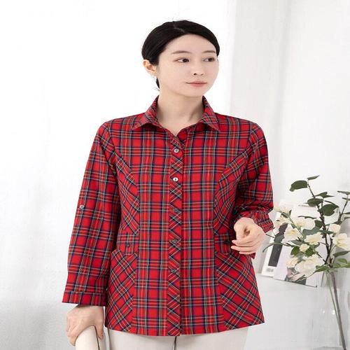 [모슬린]엄마옷 겉기모 체크 긴팔 셔츠 512FGH214 마담/중년여성/빅사이즈/50대/60대