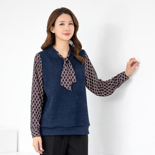 엄마옷 마담4060 리본묶음블라우스-QBL2508040-